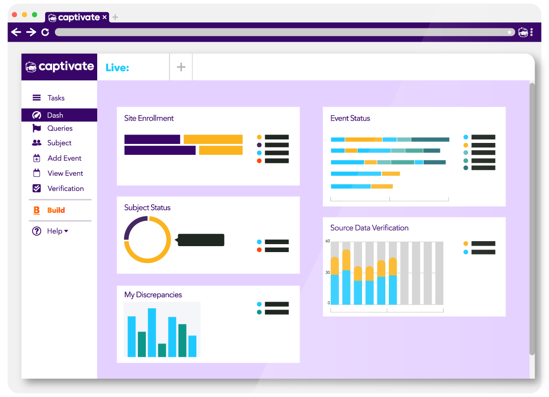 Built on AWS and optimized for clinical trial workloads, the Captivate Platform supports studies of all sizes while reducing operational friction, minimizing disruption, and supporting inspection readiness.